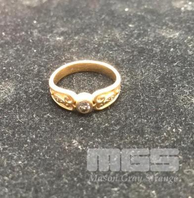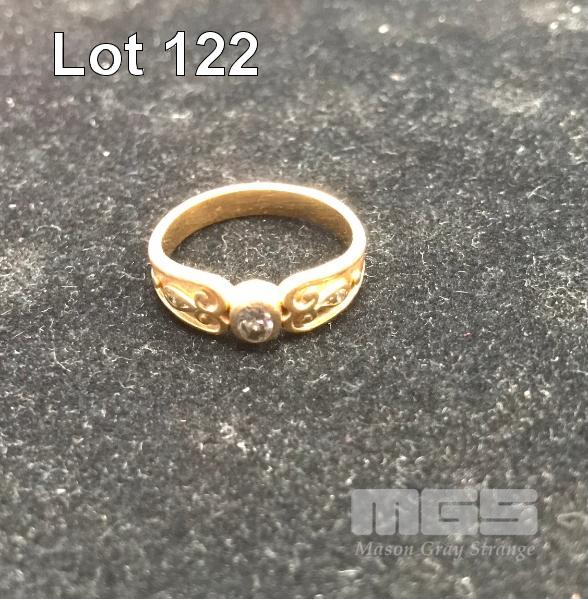 GOLD RING UNMARKED (TESTED 18ct), SET WITH DIAMOND & 2 X DIAMOND CHIPS 4.6 grams
