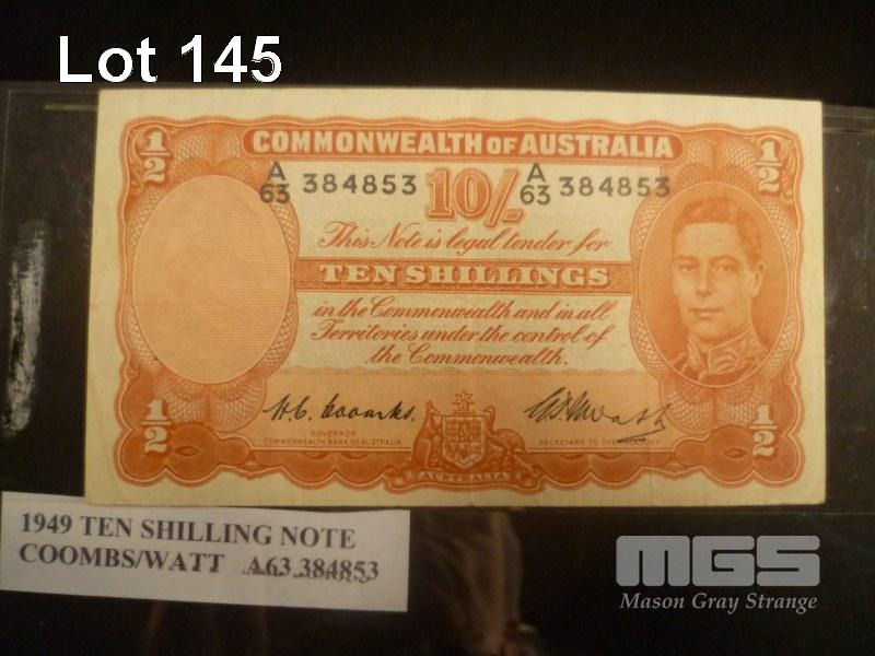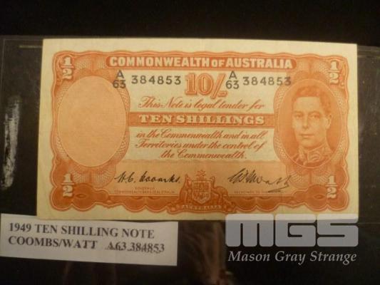 COMMONWEALTH OF AUSTRALIA, 1949, TEN SHILLING BANKNOTE, COOMBS/WATT, A63 384853