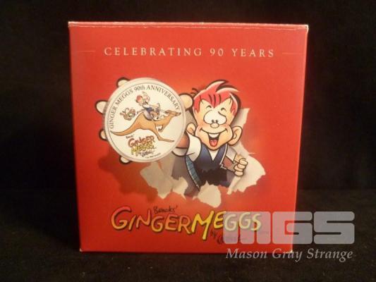 PERTH MINT, 2011, GINGER MEGGS, LIMITED EDITION, COLOURED, 1OZ, SILVER PROOF COIN, IN TIMBER CASE, #494 OF 3,000
