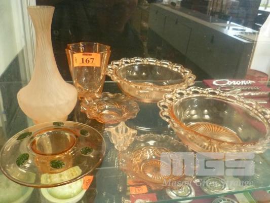 ASSORTED PINK GLASS BOWLS, VASES, ETC