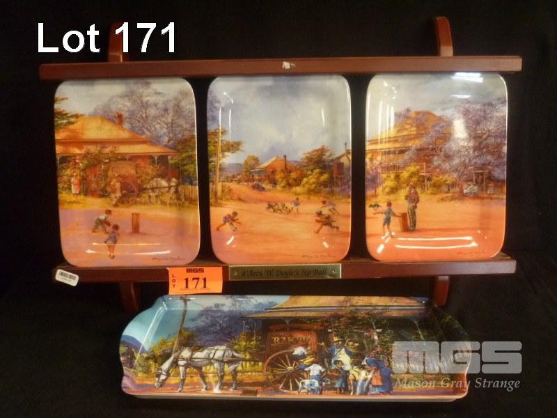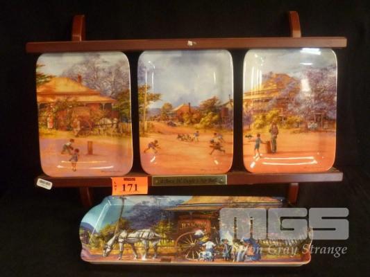SET 3 BRADEX D'ARCEY DOYLE NO BALL DISPLAY PLATES, IN TIMBER DISPLAY STAND