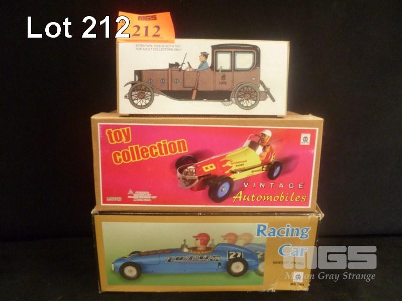 4 x WIND UP TIN CARS INC RACING CAR MS641, VINTAGE AUTOMOBILES & VINTAGE CAR