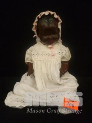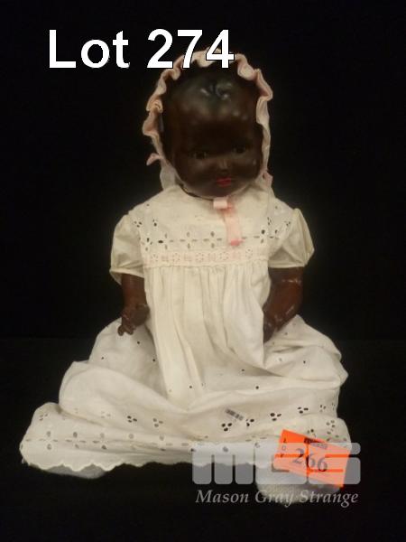 DRESS DOLL, LINEN DRESS MARKED AM GERMANY 351/5K