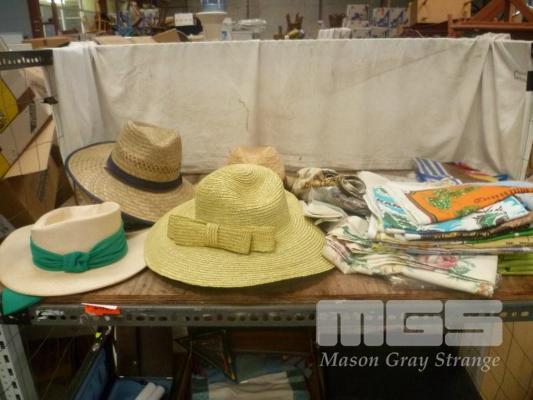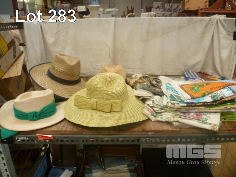 ASSORTED HATS, TEA TOWELS ETC, 1 X BAY