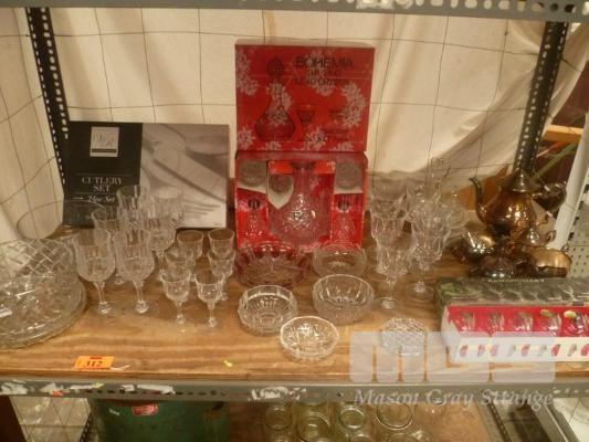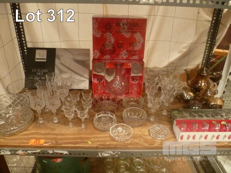 BOHEMIA LEAD CRYSTAL 7 PIECE SHERRY SET, CRISTAL D'ARQUES 6 PIECE LEAD CRYSTAL STEM GLASS SET, 24 PIECE CUTLERY SET, ASSORTED CRYSTAL GLASSES & BOWLS, EPNS TEA SERVICE SET, 1 x BAY