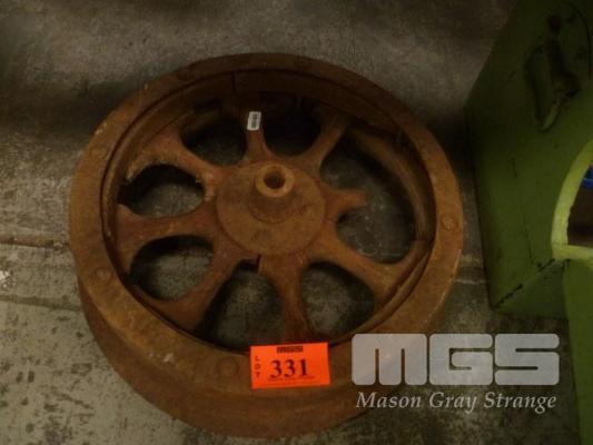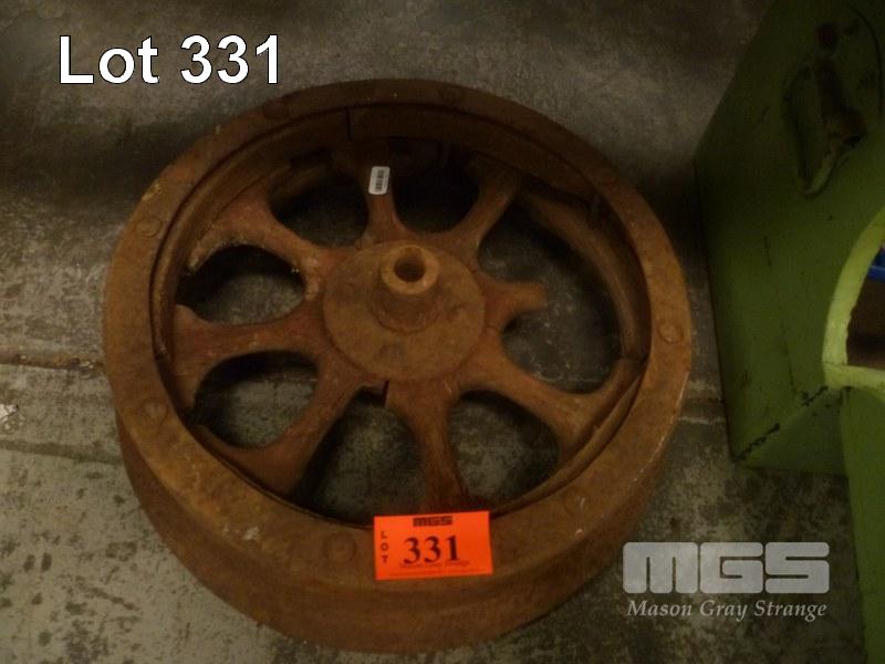 VINTAGE FARM IMPLEMENT WHEEL, TIMBER SPOKE BROKEN, 39cm DIAMETER