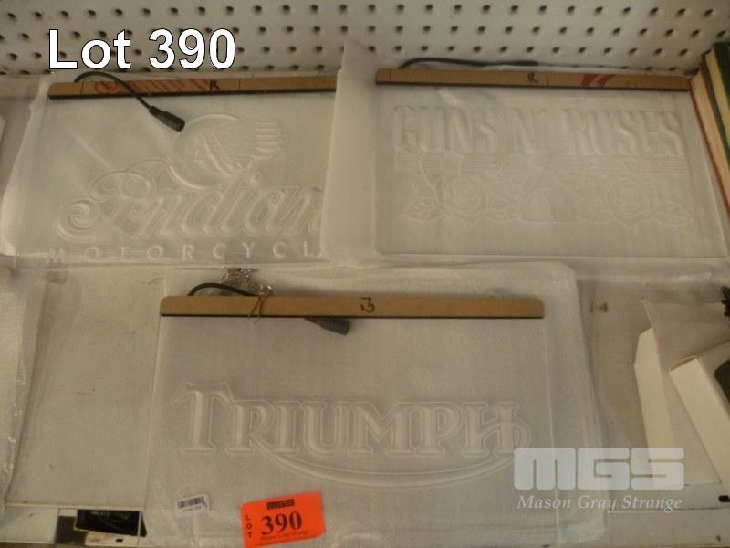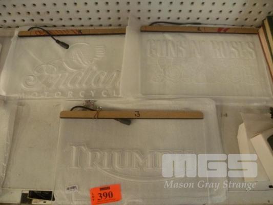 3 x LED ILLUMINATED SIGNS WITH POWER SUPPLIES INC GUNS & ROSES, TRIUMPH & INDIAN MOTORCYCLES