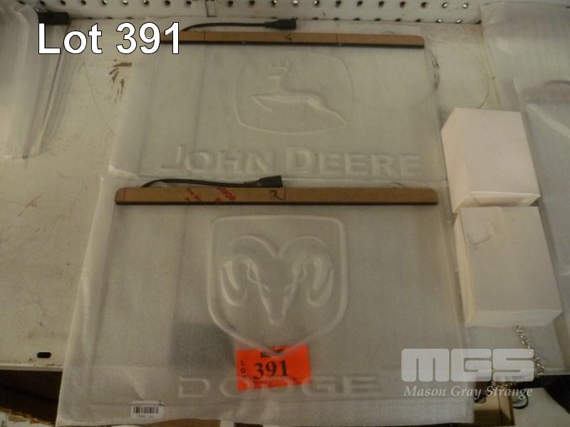 2 x LED ILLUMINATED SIGNS WITH POWER SUPPLIES INC DODGE & JOHN DEERE