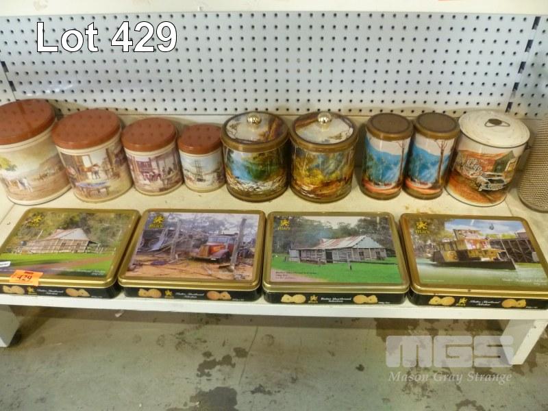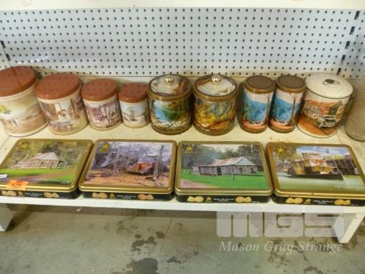 SET 4 GRADUATED AUSTRALIAN ARTIST COLLECTOR TINS, 4 x ASSORTED KEVIN BEST COLLECTOR TINS & 4 x MACS BISCUIT TINS