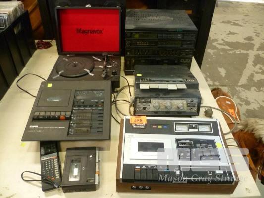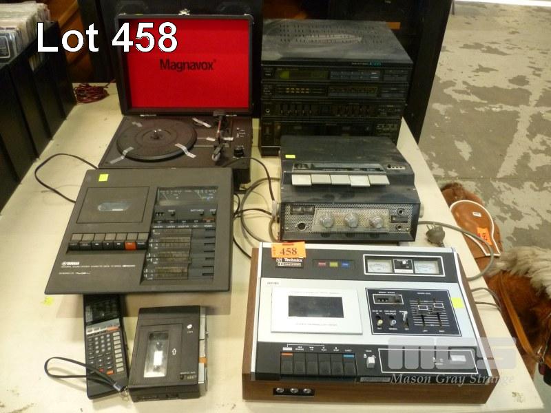 TEAC HI-FI SYSTEM, JC-65, AKAI 4 TRACK STEREO TAPE RECORDER, CROSSFIELD, X-IV, TECHNICS STEREO CASSETTE DECK, 263AU, YAMAHA NATURAL SOUND CASSETTE DECK, TC-800GL, MAGNAVOX PORTABLE TURNTABLE & KENWOOD SPEAKERS