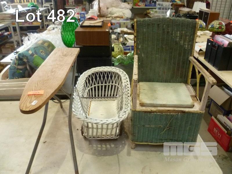 3 x VINTAGE CHILDRENS FURNITURE INC COMMODE,PRAM & IRONINGB