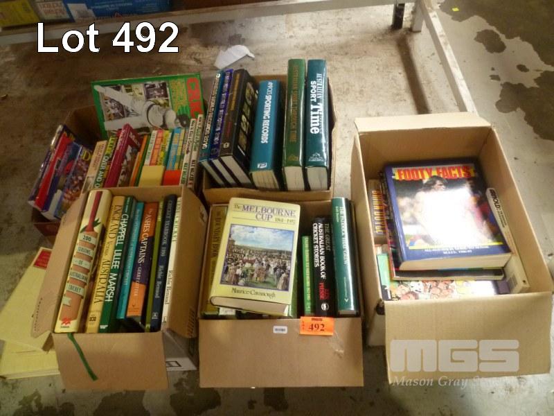 SPORTS BOOKS, INC CRICKET, FOOTBALL & THE MELBOURNE CUP BY MAURICE CAVANOUGH, 5 x BOXES