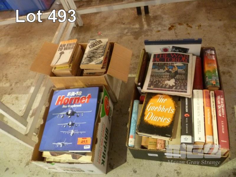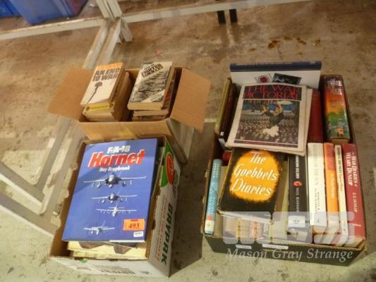 ASSORTED MILITARIA, WARFARE, FICTION & NON FICTION BOOKS, 3 x BOXES