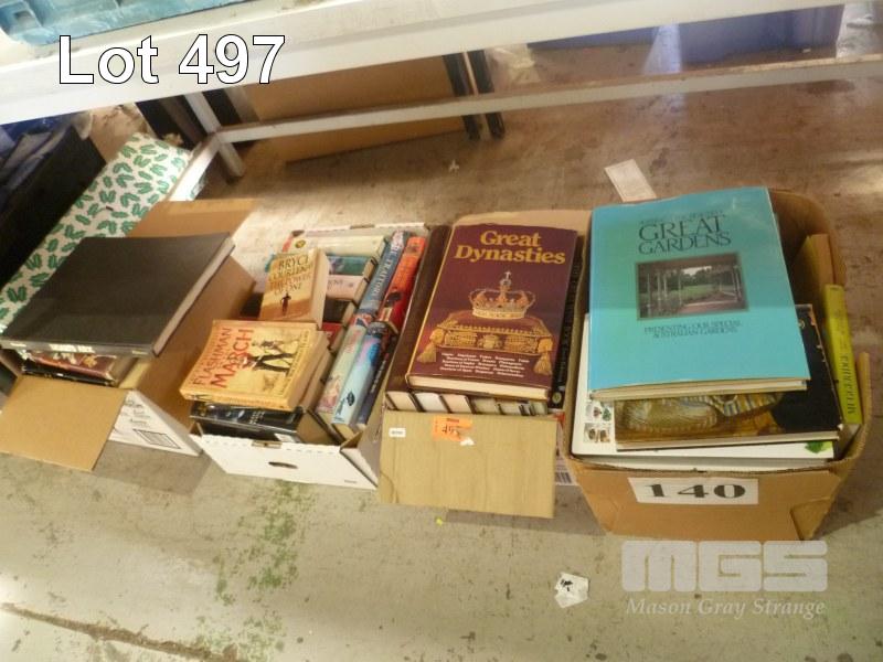 ASSORTED REFERENCE & FICTION BOOKS, 4 x BOXES