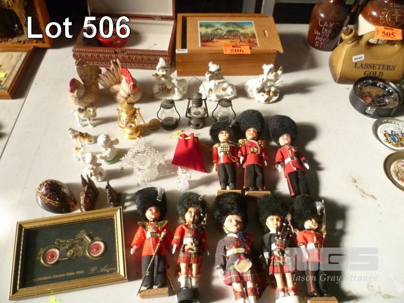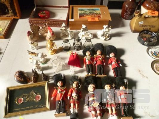 ASSORTED ORNAMENTS, BRITISH DOLLS, JEWELLERY BOX, ETC