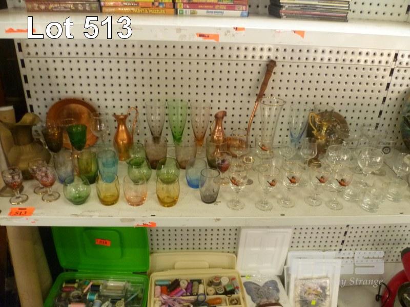 ASSORTED CRYSTAL WARE INC GLASSES, COLOURED GLASS, ETC