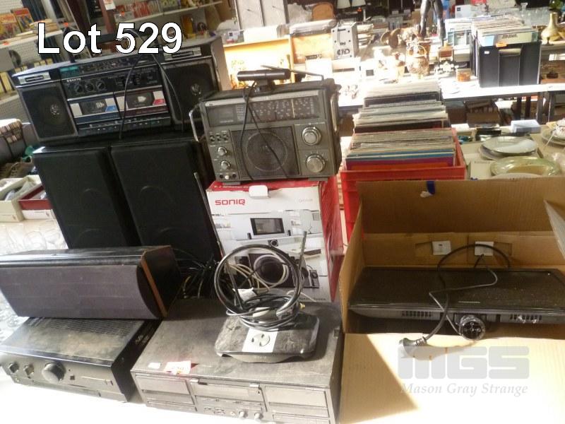 CHANGHONG 22" LCD TV (NO REMOTE), KENWOOD STEREO DOUBLE CASSETTE DECK, KX-W4040, KENWOOD STEREO INTEGRATED AMPLIFIER, A-34, SONIQ 2.1 SPEAKER SYSTEM, KENWOOD SPEAKERS, SANYO PORTABLE STEREO & DSE MULTIBAND RECEIVER
