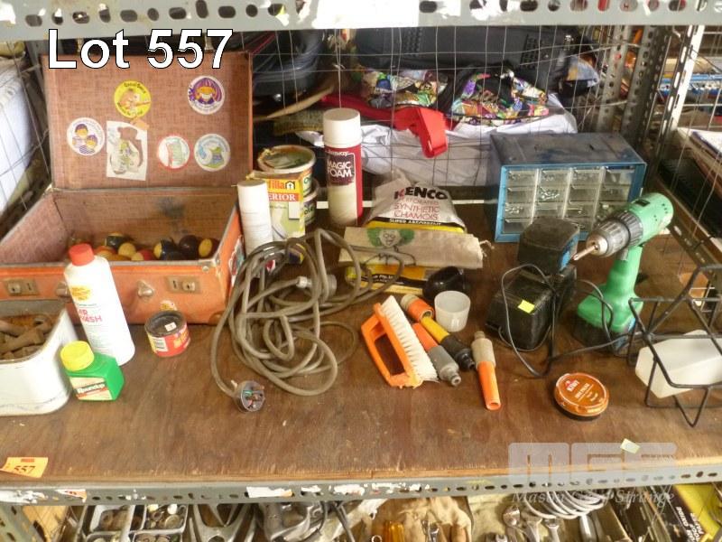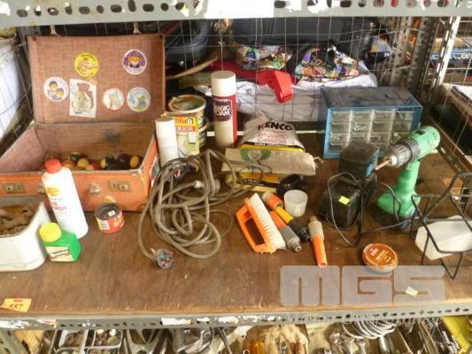 HITACHI CORDLESS DRILL WITH BATTERY & CHARGER, FITTINGS, EIGHT BALLS, ETC