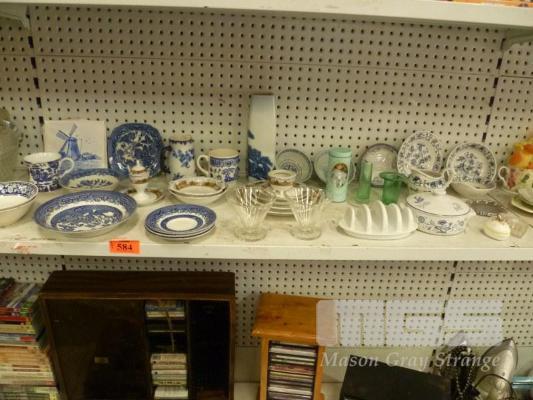 ASSORTED BLUE & WHITE CHINA, GLASS, ETC