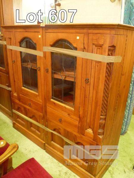 PINE WALL UNIT, 2 PIECES, LEADLIGHT DOORS, UNDERSTORAGE
