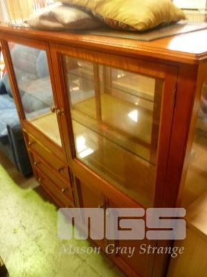 GLASS DISPLAY CHINA CABINET WITH GLASS SHELVES, 3 x DRAWERS & 2 x DOORS