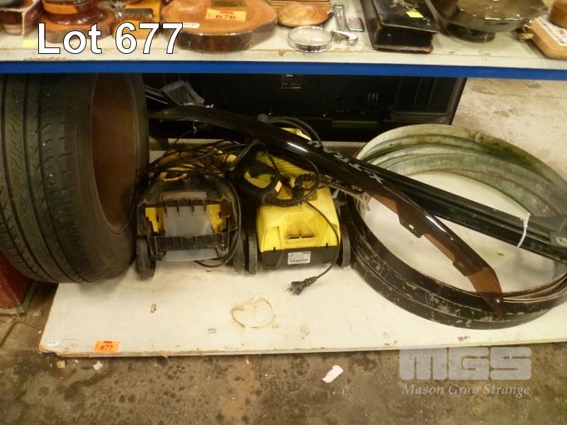 2 x KARCHER PRESSURE WASHERS, NISSAN X-TRAIL BONNET PROTECTOR, WINE BARREL, ETC