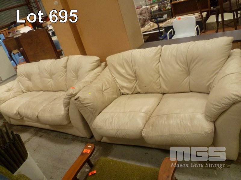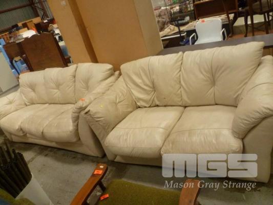 BEIGE LEATHER 2 PIECE LOUNGE SUITE INC 2.5 & 3 SEATER