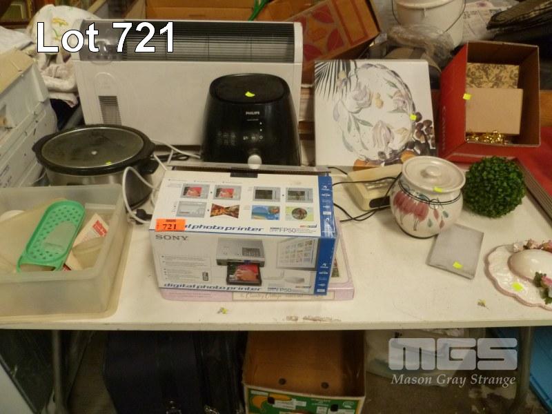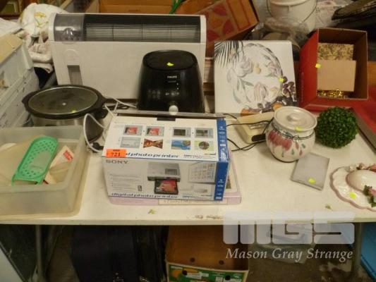PHILIPS AIR FRYER, SLOW COOKER, HEATER, PHOTO PRINTER & ASSORTED HOMEWARE (1 X TABLE)