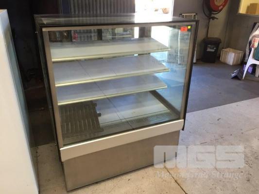 SQUARE GLASS CAKE DISPLAY, TOPAZ HTCH12HA 120cm, STAINLESS STEEL CASED SELF CONTAINED UNIT, 240V