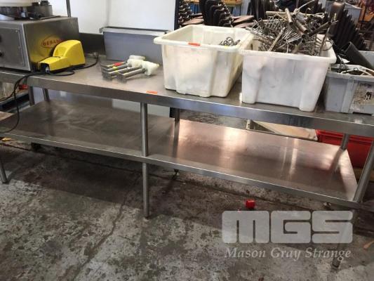STAINLESS STEEL PREP BENCH, 240 x 70cm, 2 TIER WITH SPLASHBACK