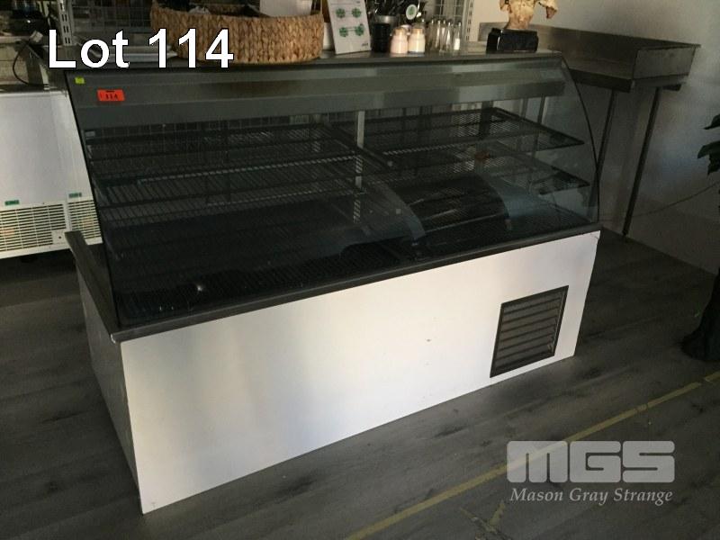 BOW GLASS CAKE DISPLAY, 180cm, SELF CONTAINED UNIT, 240V