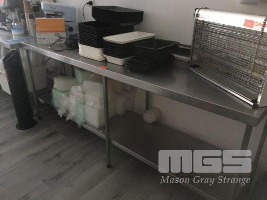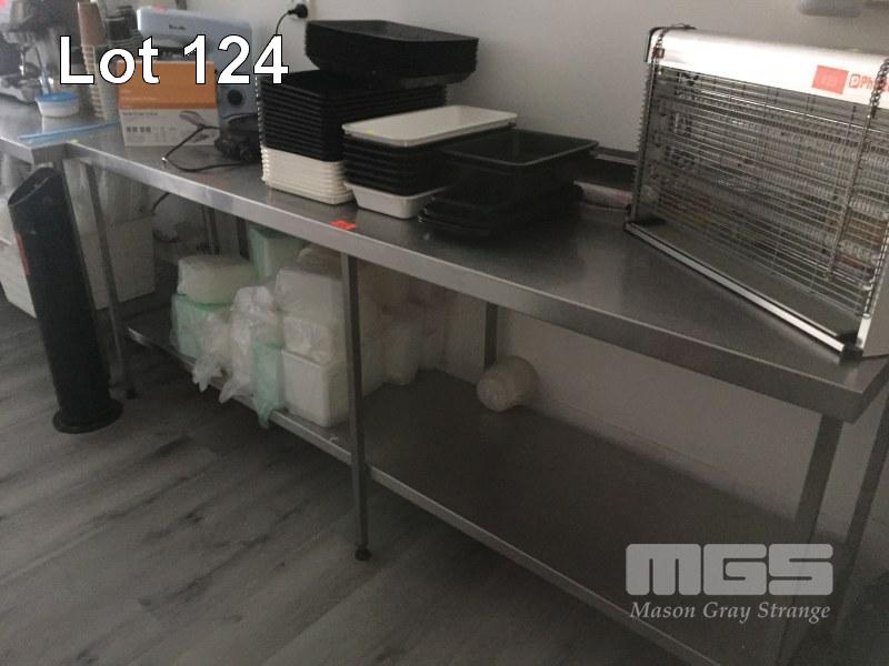 STAINLESS STEEL PREP BENCH, 227 x 60cm, 2 TIER WITH SPLASHBACK