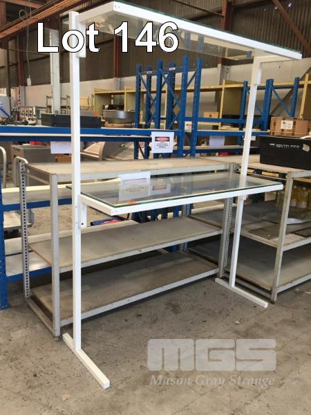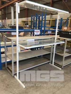 STEEL FRAME GLASS SHELF, 2 TIER, 2100 x 1600 x 600mm