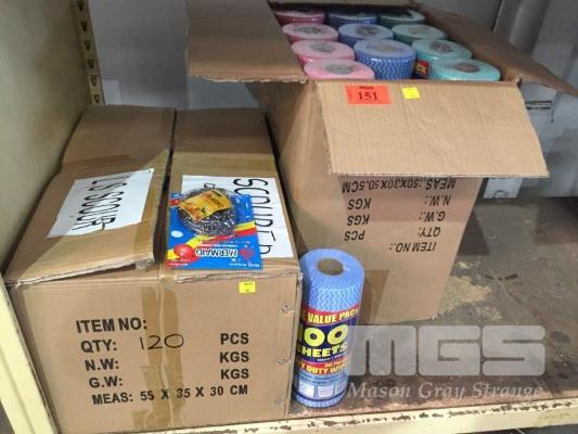 30 x ROLLS WIPES & 1 x BOX SCOURERS