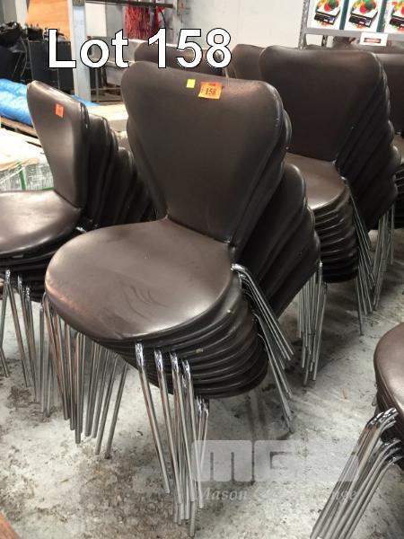 50 x RESTAURANT DINING CHAIRS, BROWN VINYL, CHROME FRAME (SOME RIPPED & WORN)
