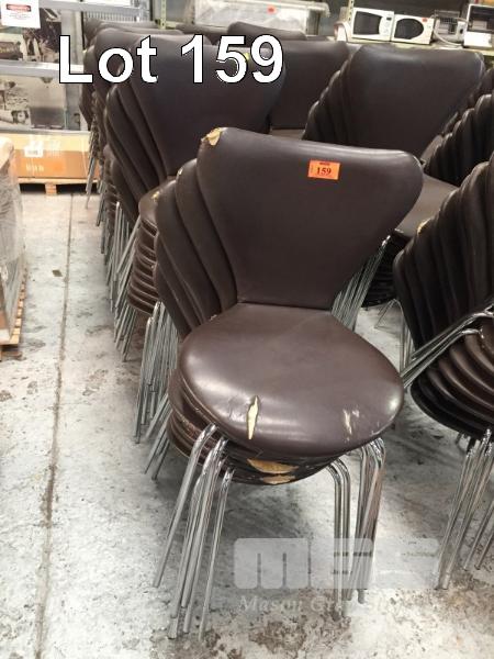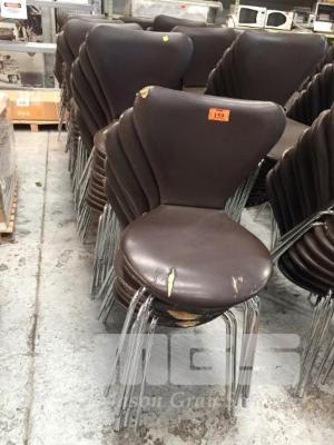 50 x RESTAURANT DINING CHAIRS, BROWN VINYL, CHROME FRAME (SOME RIPPED & WORN)