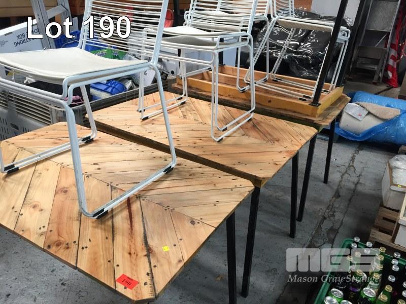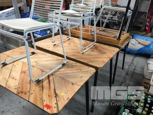 4 x CAFE TABLES, 120 x 74cm,RUSTIC TIMBER TOP & 8 x MATCHING CAFE CHAIRS
