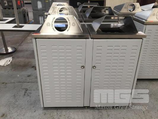 3 x DOUBLE BIN ENCLOSURES, STEEL FRAME, STAINLESS STEEL TOP