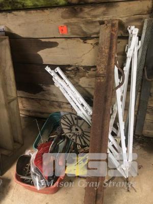 ASSORTED FENCING EQUIPMENT, STRAINER, TOOLS, CABLE etc.