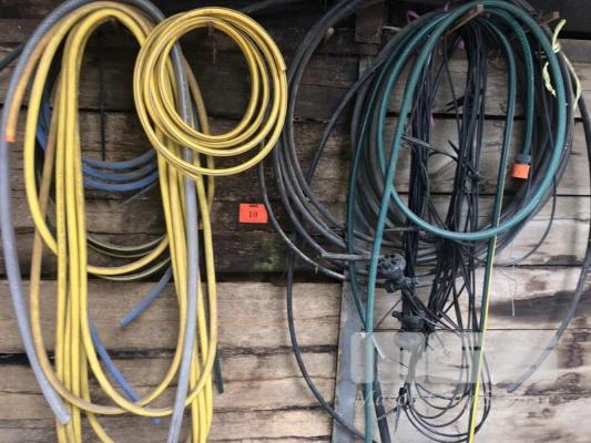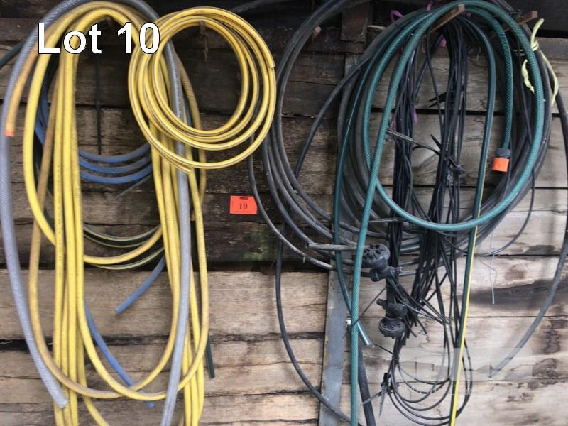 ASSORTED POLY AND FLEXIBLE HOSES, IRRIGATION LINES ON WALL