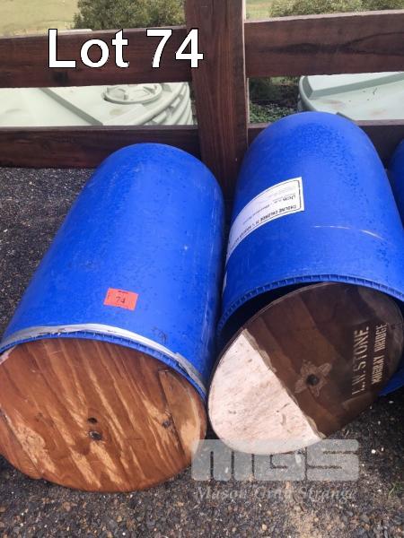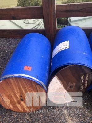 2 x BLUE 200 LITRE POLY FEED BINS WITH LIDS