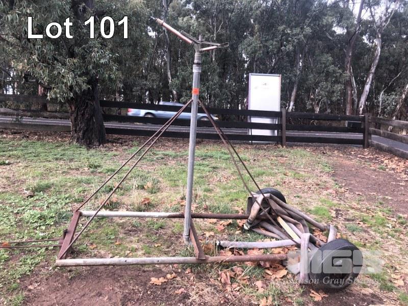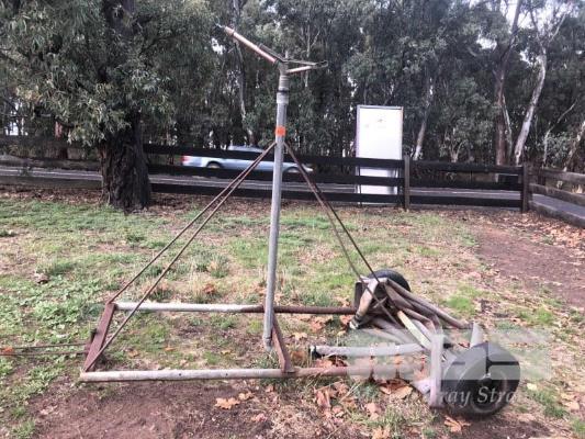 HEAVY DUTY NAAN IRRIGATION GUN, ON MOBILE STEEL FRAME, MADE IN ISRAEL (1 x WHEEL NEEDS REPLACING)