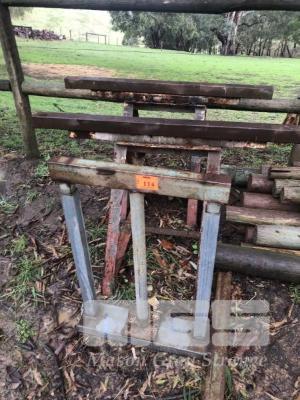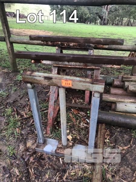 2 x HEAVY DUTY STEEL FRAME STANDS, 1300 x 800mm & FABRICATED ADJUSTABLE HEIGHT STEEL STAND