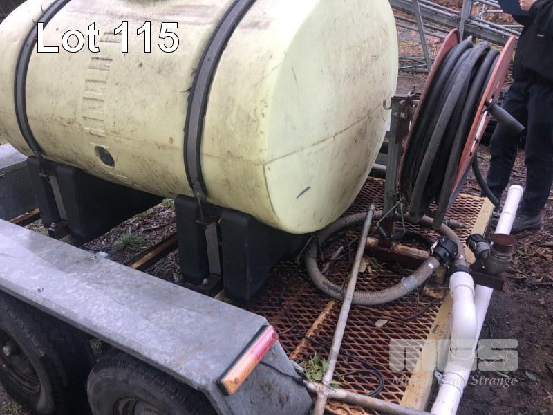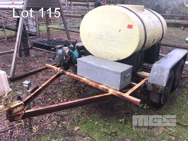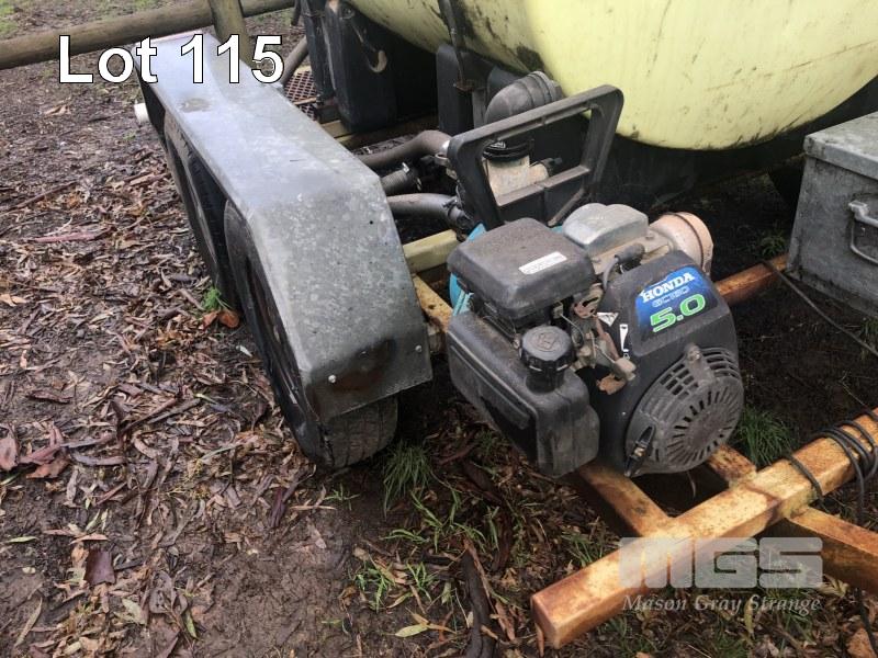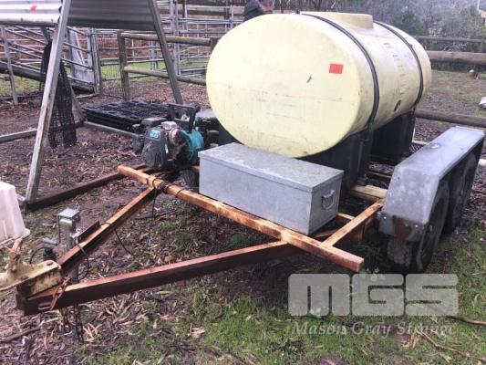 FIRE FIGHTING TRAILER, UNREGISTERED A FRAME TANDEM TRAILER 1000 LITRE POLY TANK 5HP HONDA GC160 PETROL MOTOR ONGA PUMP HOSE REEL, SPRAY BOOM, DRIBBLE BAR & JETTING POST