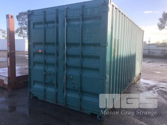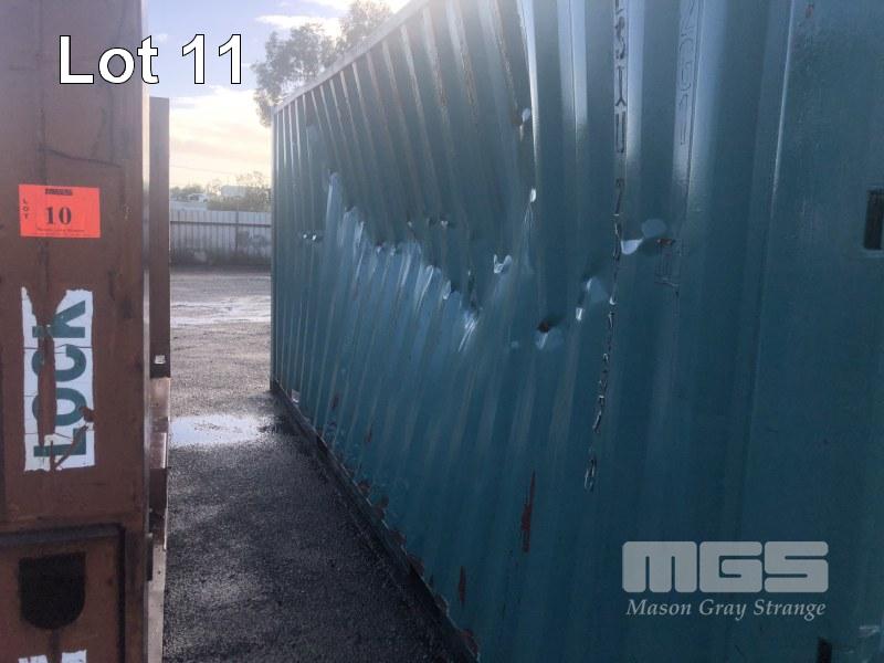 20' SHIPPING CONTAINER, DAMAGED SIDE WALL, GREEN