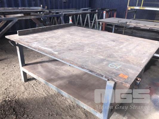 HEAVY DUTY WELDERS BENCH, PLATE STEEL TOP, 2 TIER, 2140 x 1690 x 25 THICK x 900mm (H)