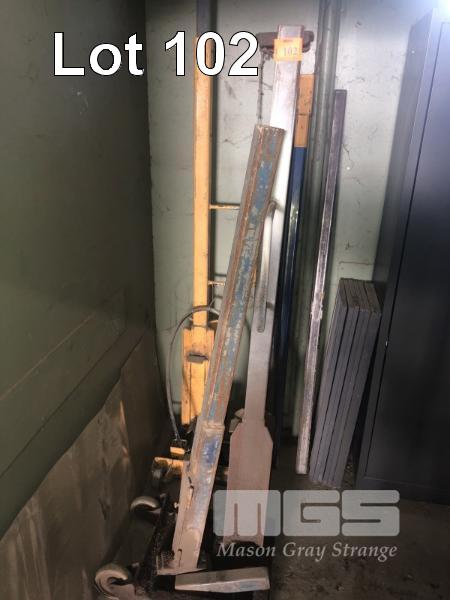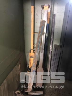 2 x SHIPPING CONTAINER ROOF STRAIGHTENING JIGS, 1 x FITTED WITH HYDRAULIC FOOT PUMP & RAM, MOBILE WITH ATTACHMENTS