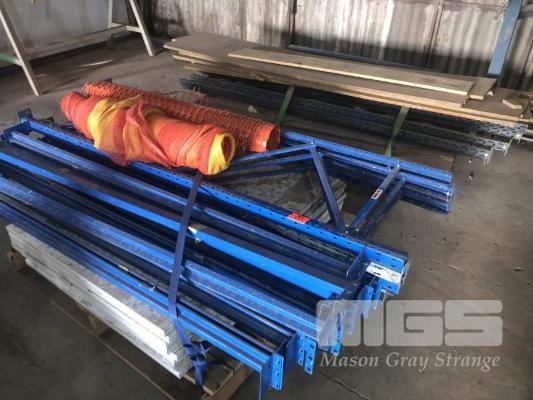 MODULAR SHELVING INCLUDING 8 x UPRIGHTS, 2000mm 20 x CROSS BEAMS, 1200mm & SHELVES 2 x PALLETS