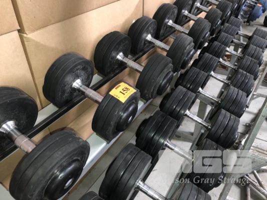 20 PIECE DUMBBELL SET WITH STORAGE RACK PAIRS OF 17.5kg - 52.5kg "AUSTRALIAN BARBELL COMPANY"