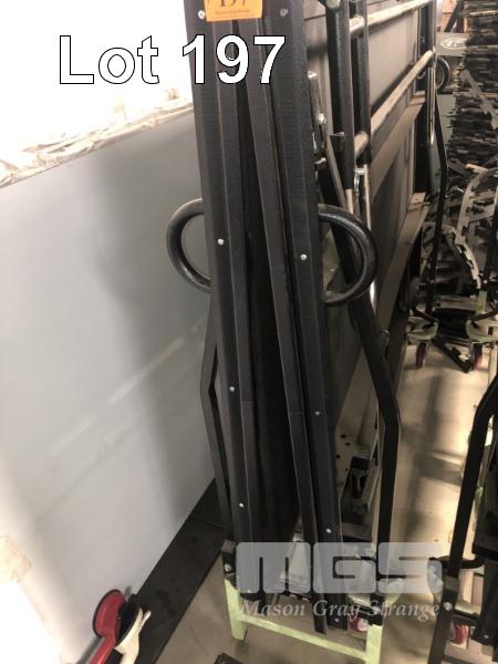 MOBILE FOLD OUT STAGE 2400mm x 1800mm CARPET TOP, CASTOR WHEELS WITH BRAKES